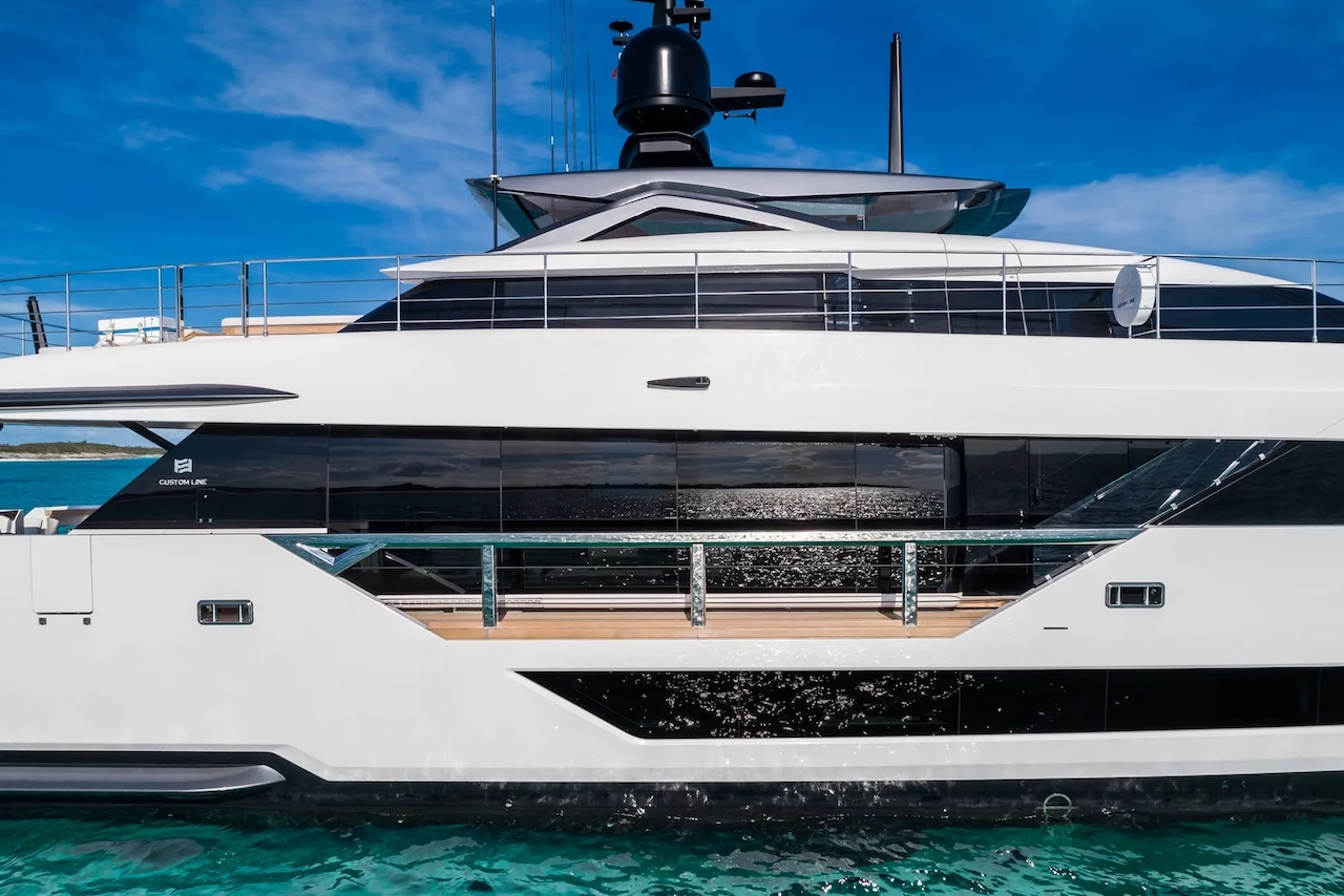 Built with a hull and superstructure made of carbon fiber, the Custom Line 120 stands out for its lightweight construction and efficiency, showcasing the pinnacle of Italian engineering. The design incorporates innovative architectural solutions and a contemporary style, offering spacious, well-integrated living areas both indoors and outdoors.
