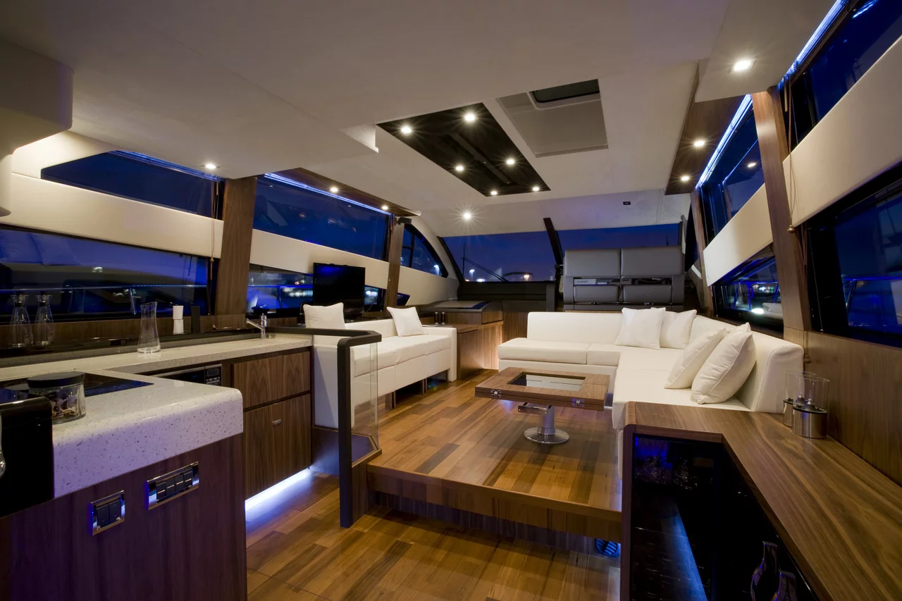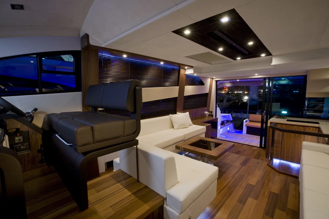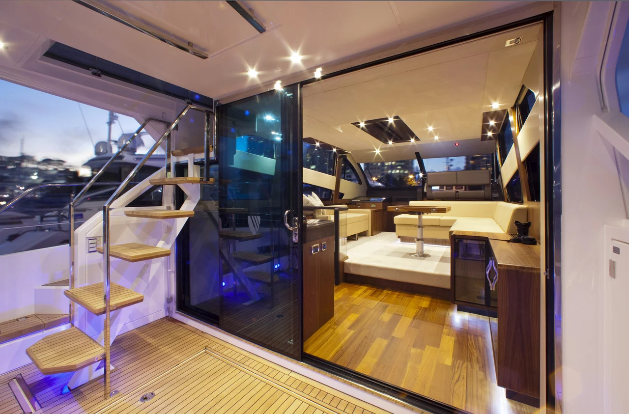 In terms of both equipment and styling, the huge, airy saloon is an example of interior design at its very best and here we feature enormous panoramic windows. The aft positioned galley places you right at the heart of the action and helps deliver the perfect, sociable alfresco environment.