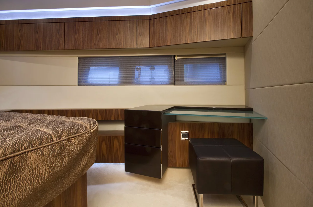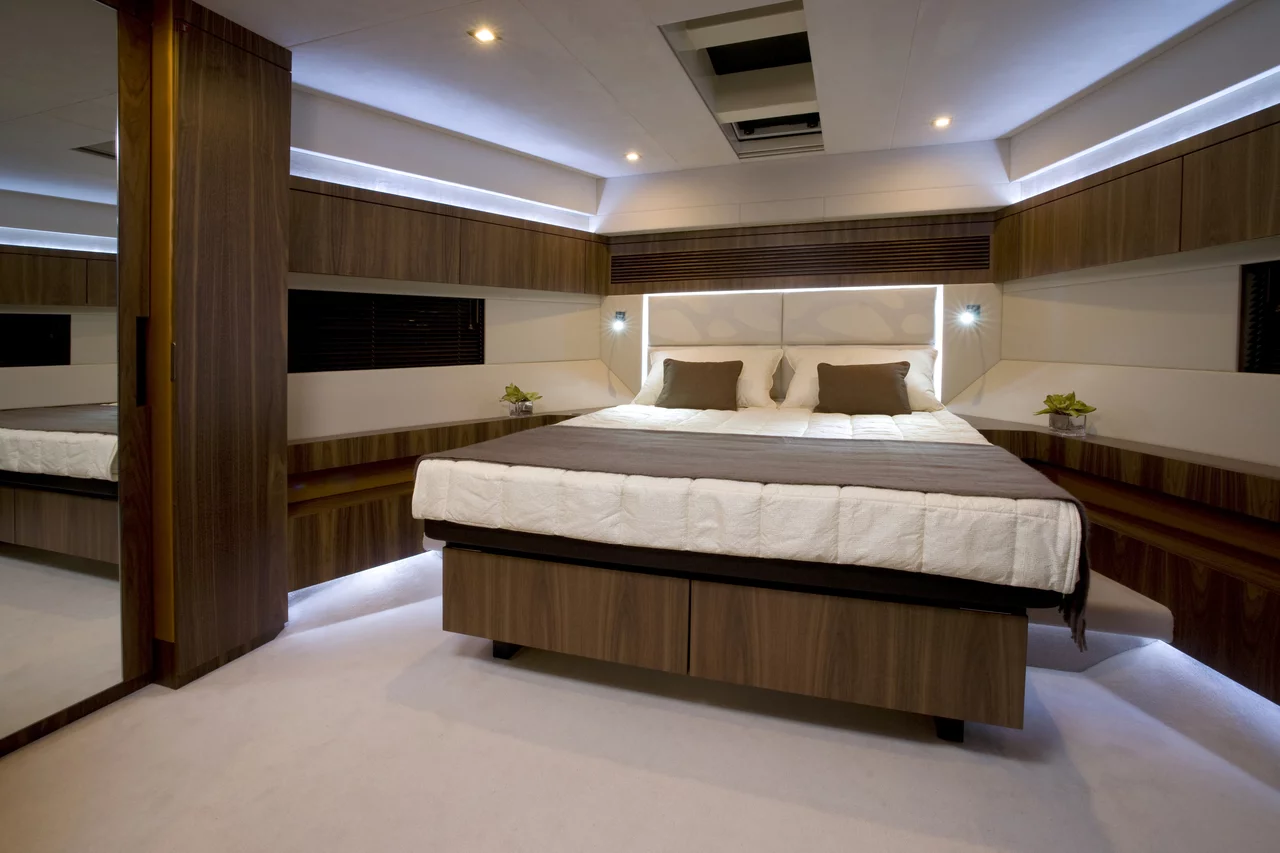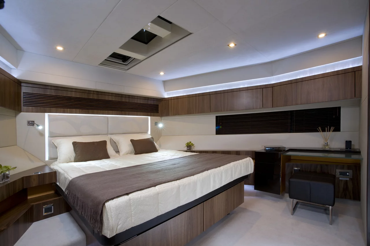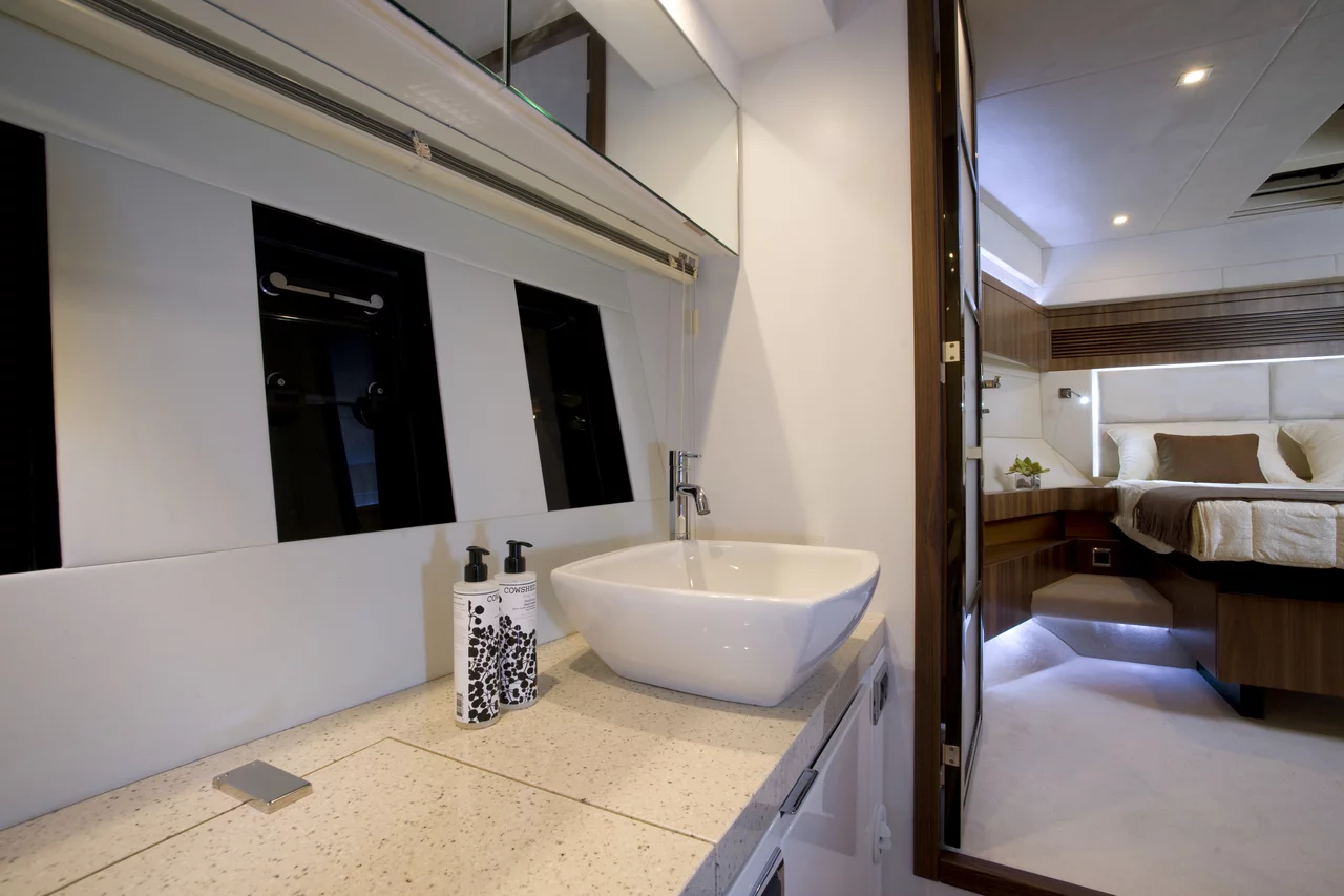 To achieve the seemingly impossible, we simply had to rewrite the rule book. Bulkheads were moved back, the bow was made beamier, all to create a yacht that has beautifully proportioned rooms, not mere cabins; where the forward master defies its position in the bow with impressively wide dimensions; where the galley is perfectly positioned so you are not tucked away from the action; and a flybridge that doesn’t feel like a flybridge, more like a large luxurious lounge open to the sky.