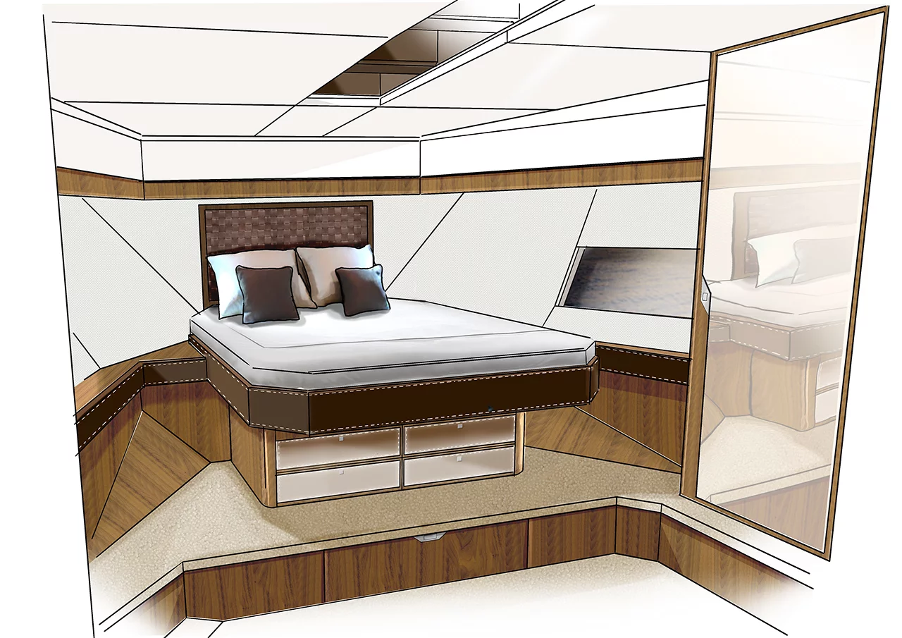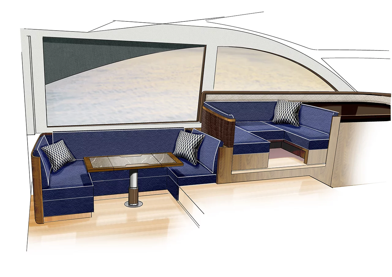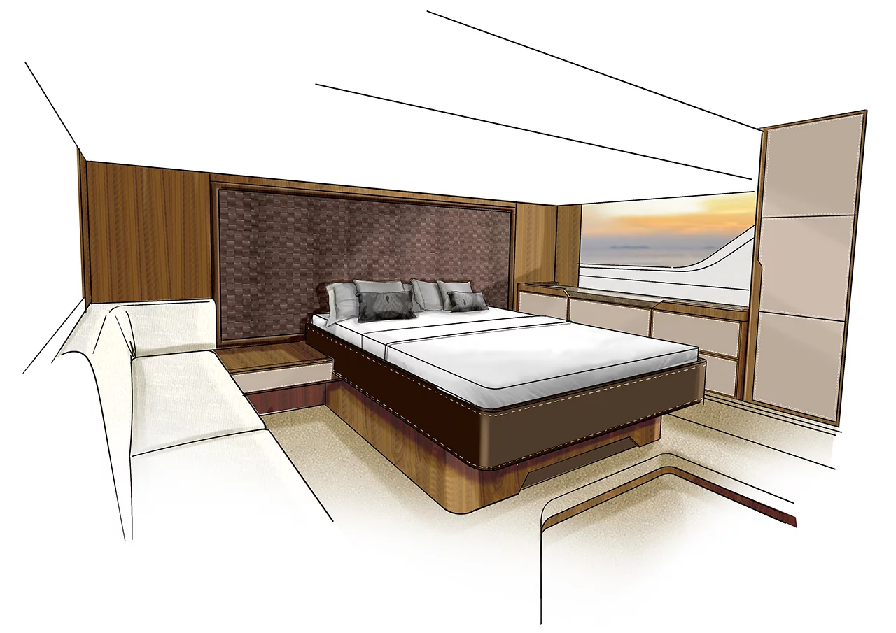 Our latest flybridge model, which is currently in the middle of its development programme, will be a true class leader in terms of the flexibility of its spacious accommodation and its styling. Our new boat sports the next step forward in the long tradition of iconic Fairline styling design, incorporating beautifully tapered hull glazing that emphasises the dynamic character of our Squadron concept and ensures that the spectacular master cabin is filled with natural light.