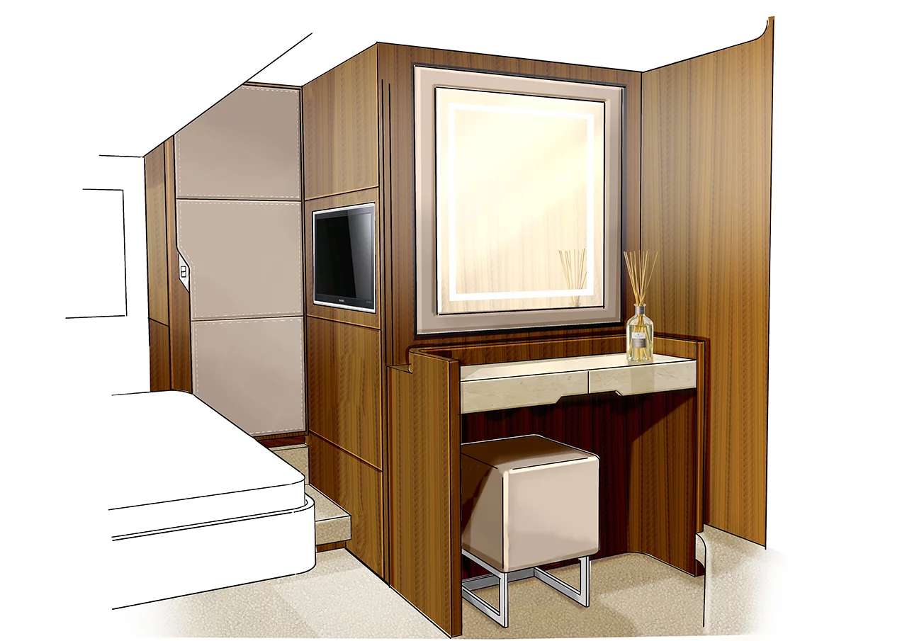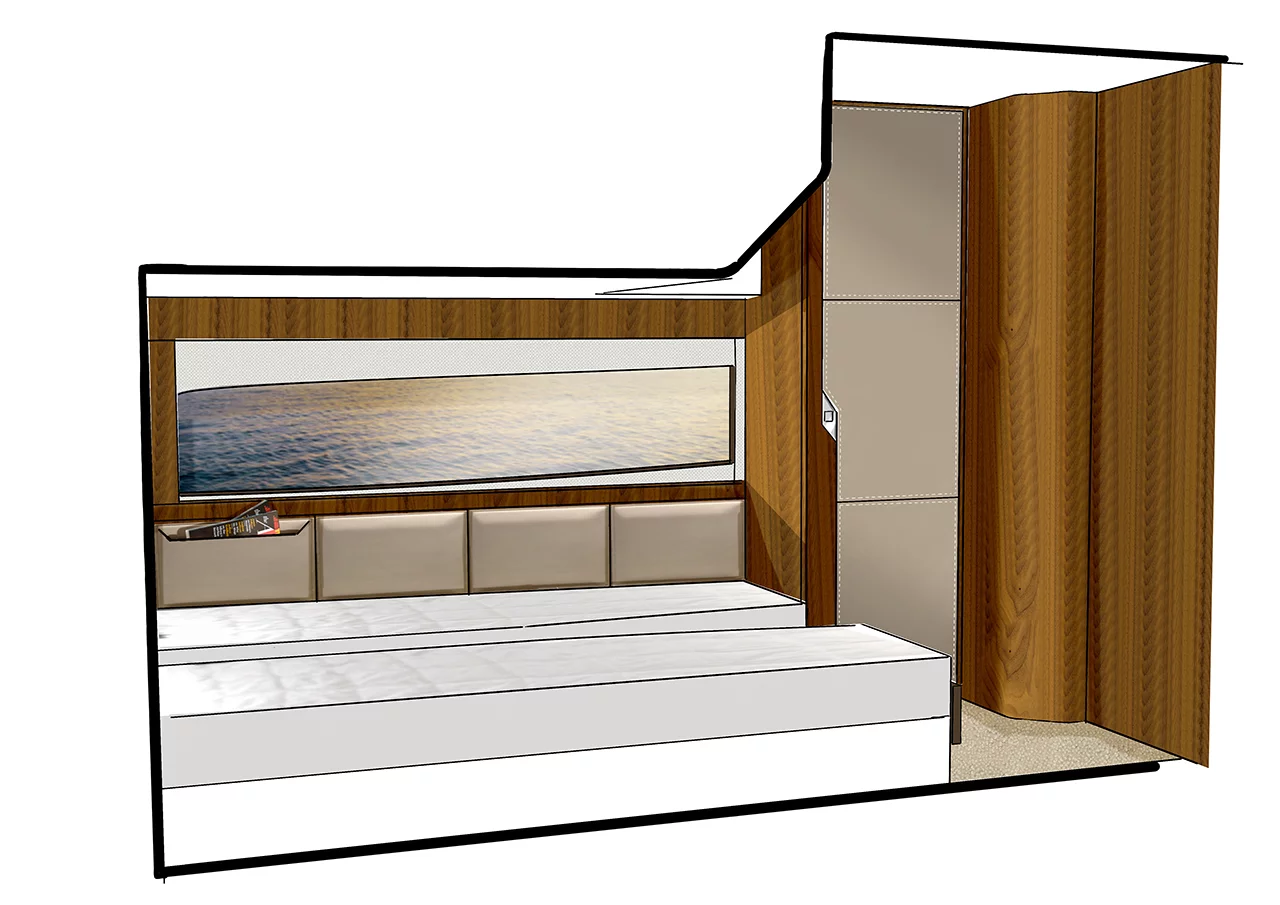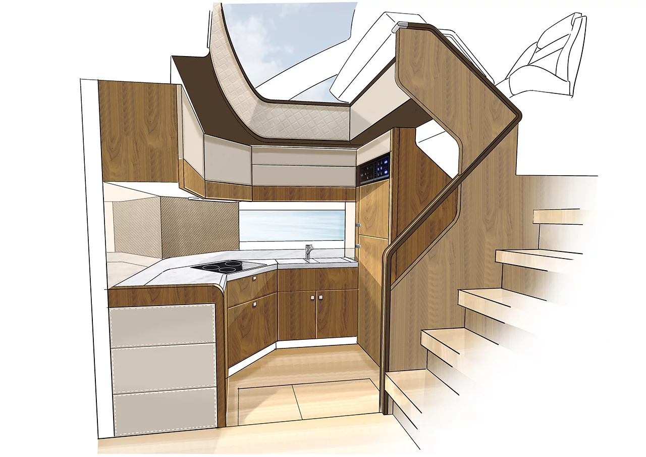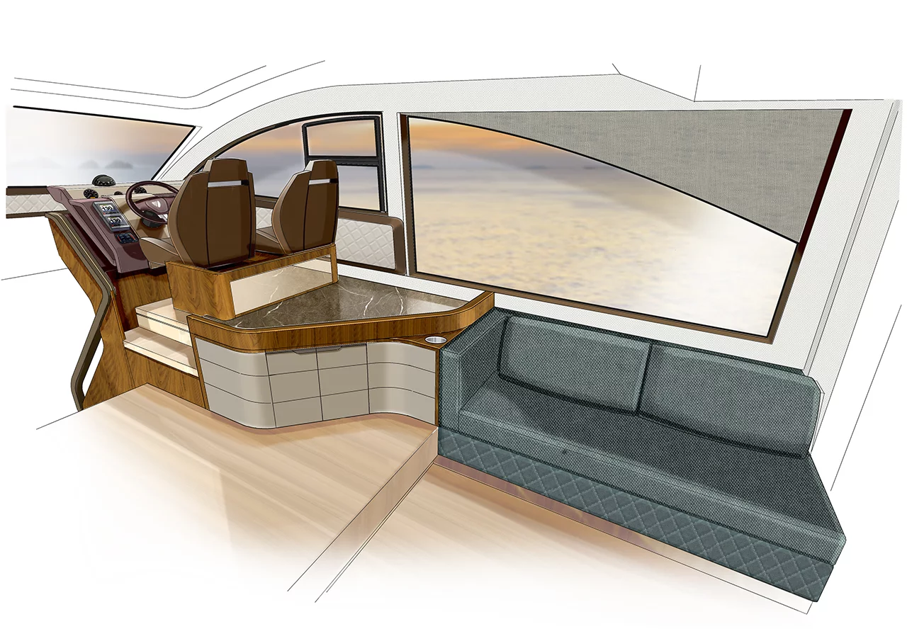 Our latest flybridge model, which is currently in the middle of its development programme, will be a true class leader in terms of the flexibility of its spacious accommodation and its styling. Our new boat sports the next step forward in the long tradition of iconic Fairline styling design, incorporating beautifully tapered hull glazing that emphasises the dynamic character of our Squadron concept and ensures that the spectacular master cabin is filled with natural light.