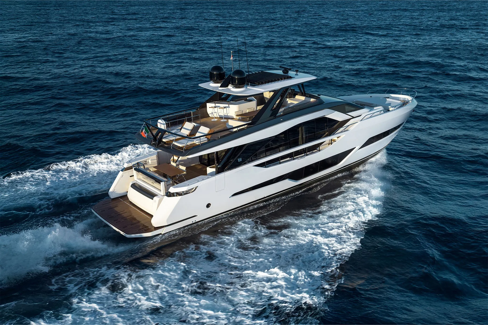 The new Ferretti Yachts 800 New embodies Italian elegance and marks the natural evolution of the Ferretti Yachts flybridge range.