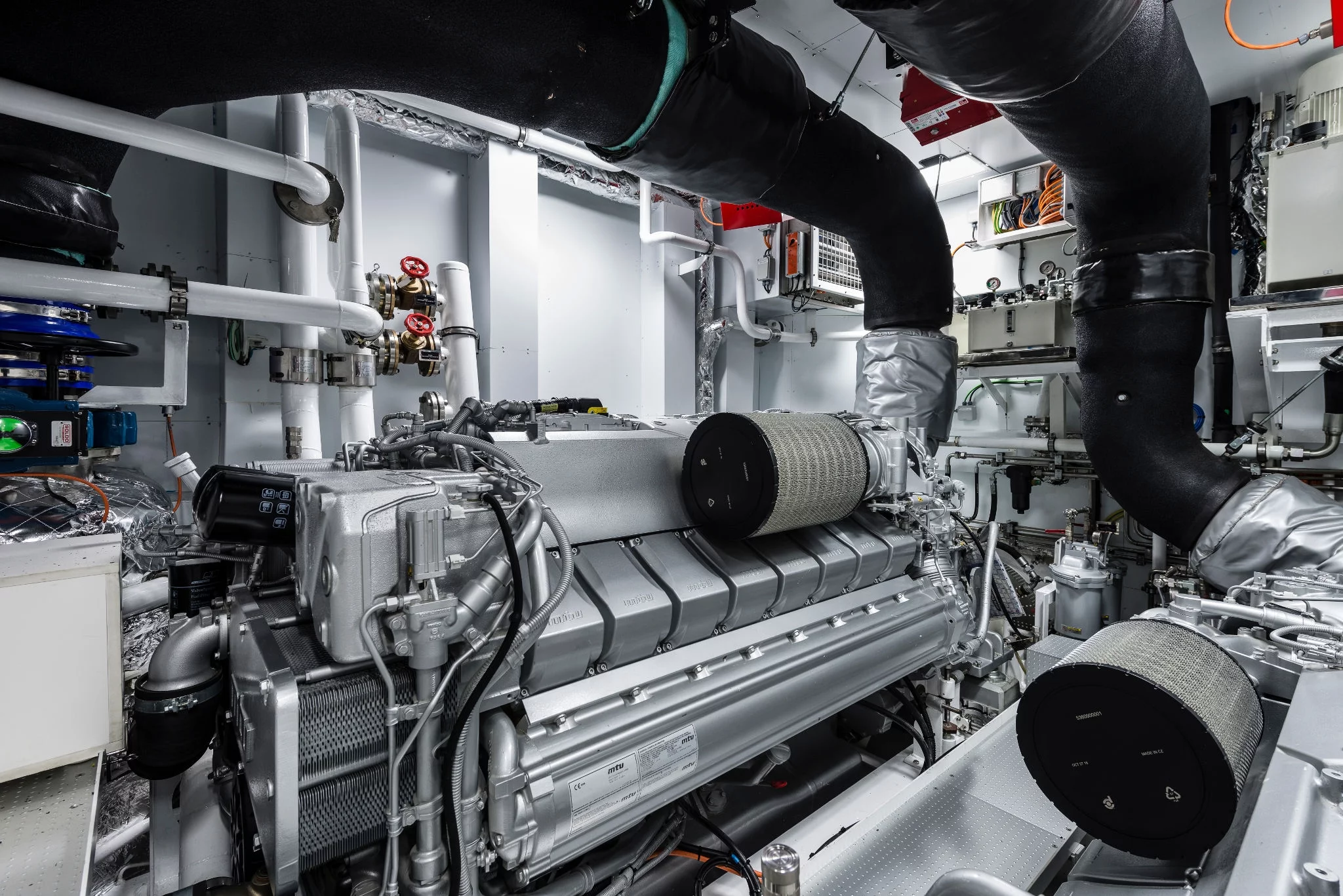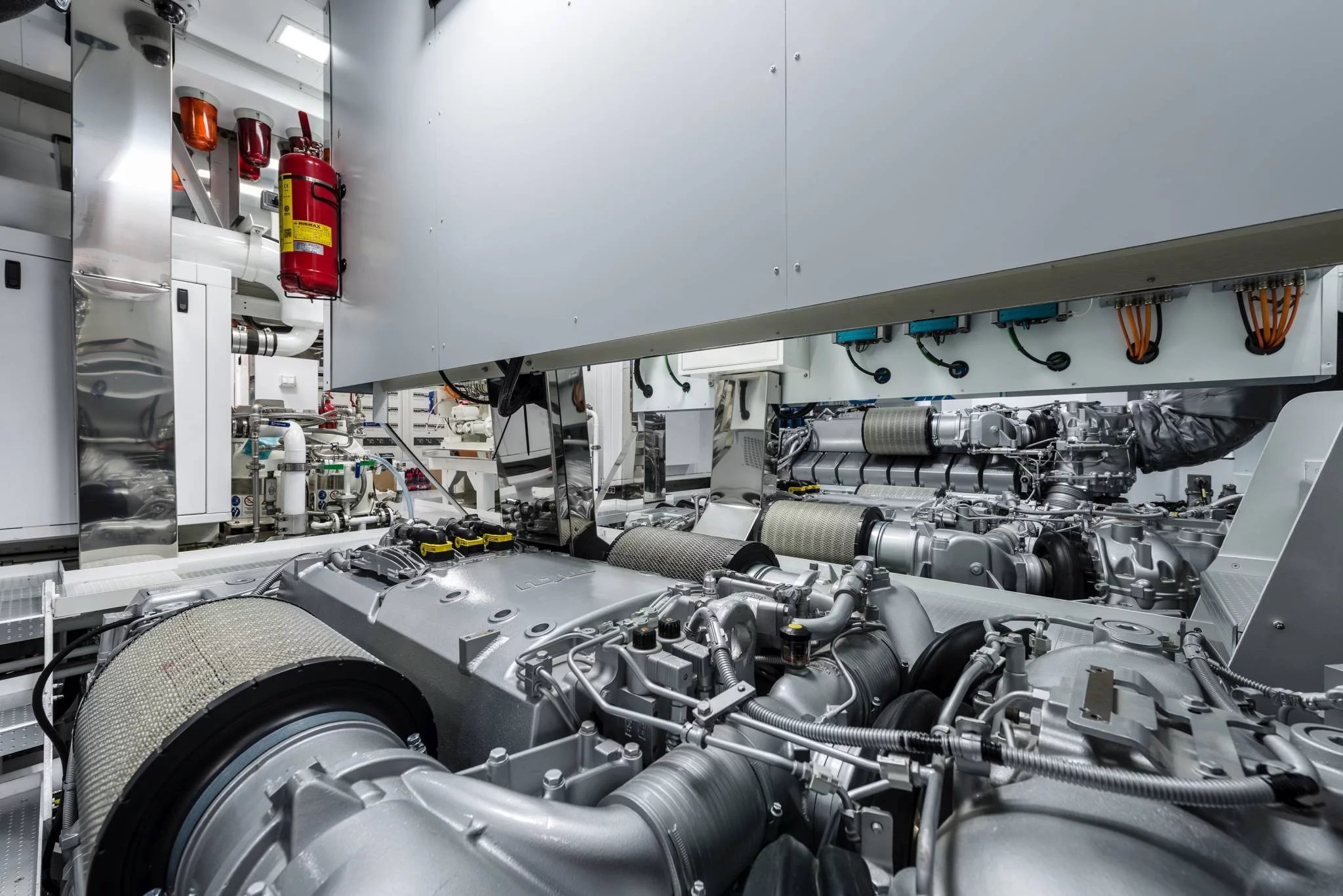 Powered by four MTU 16V 2000 M96L engines, each producing 2,600 hp, it achieves a top speed of 36 knots and a cruising speed of 30 knots, delivering exceptional performance at sea.