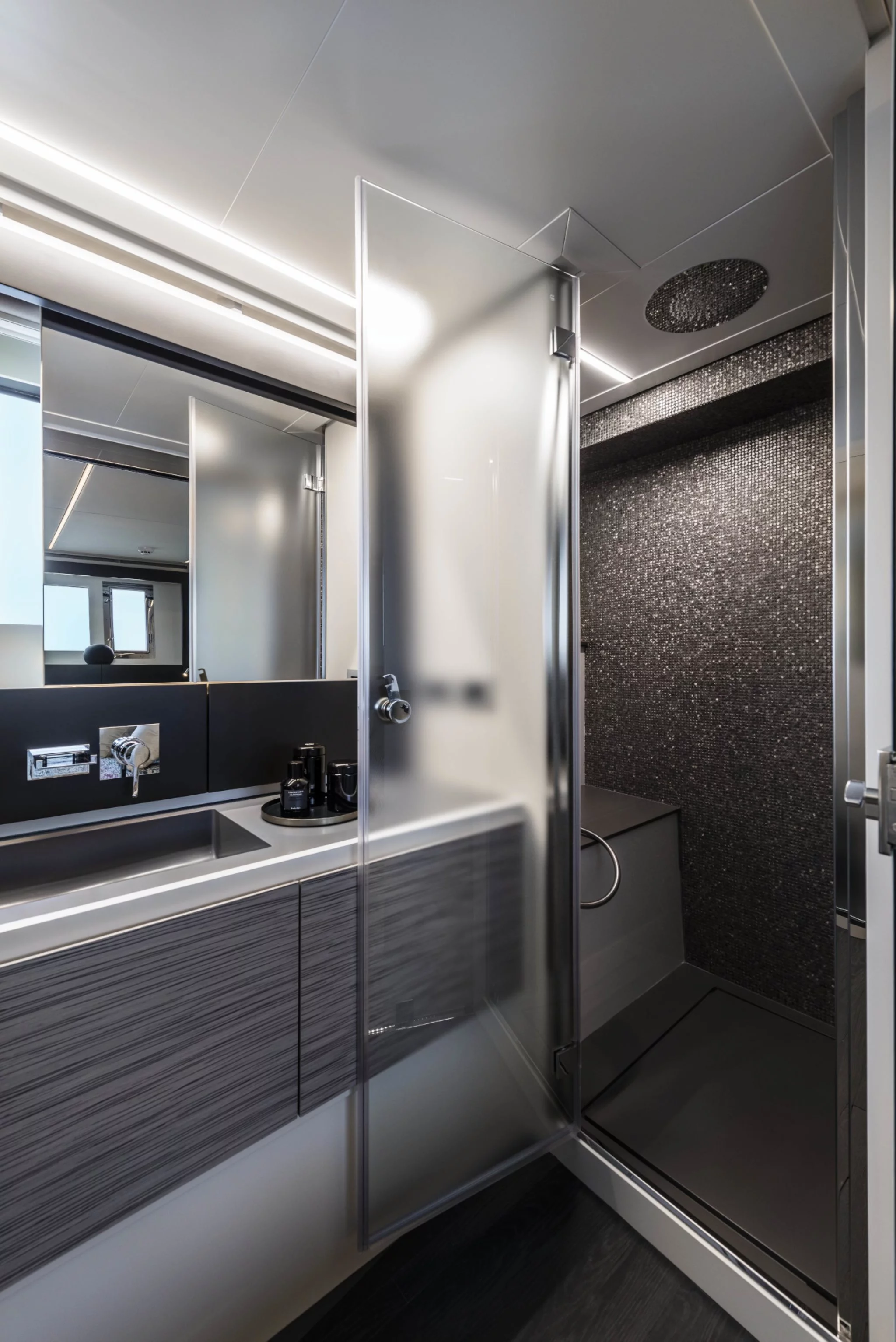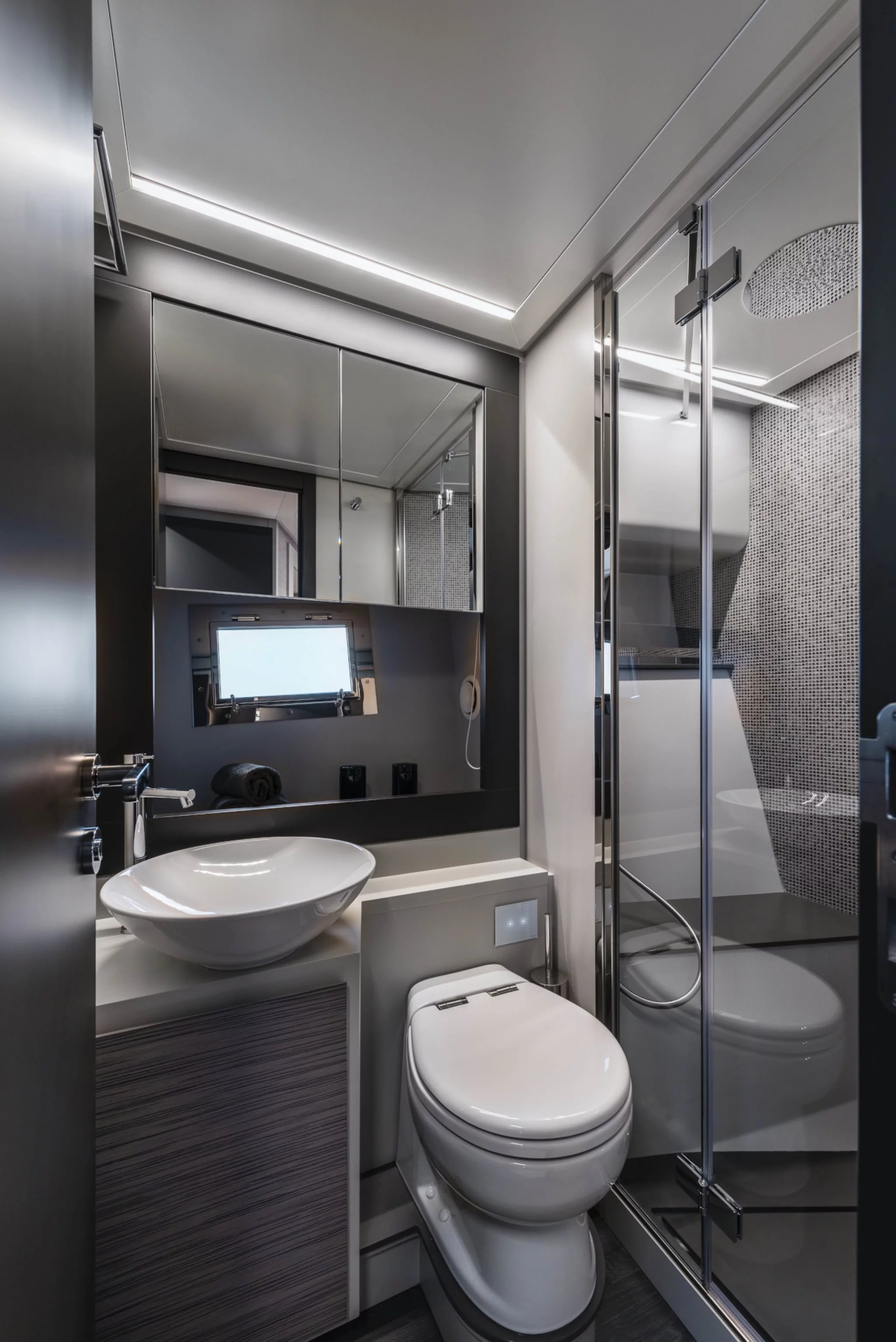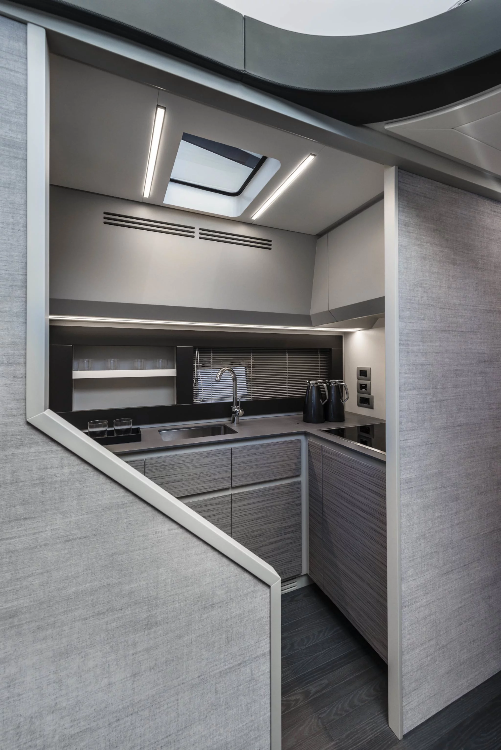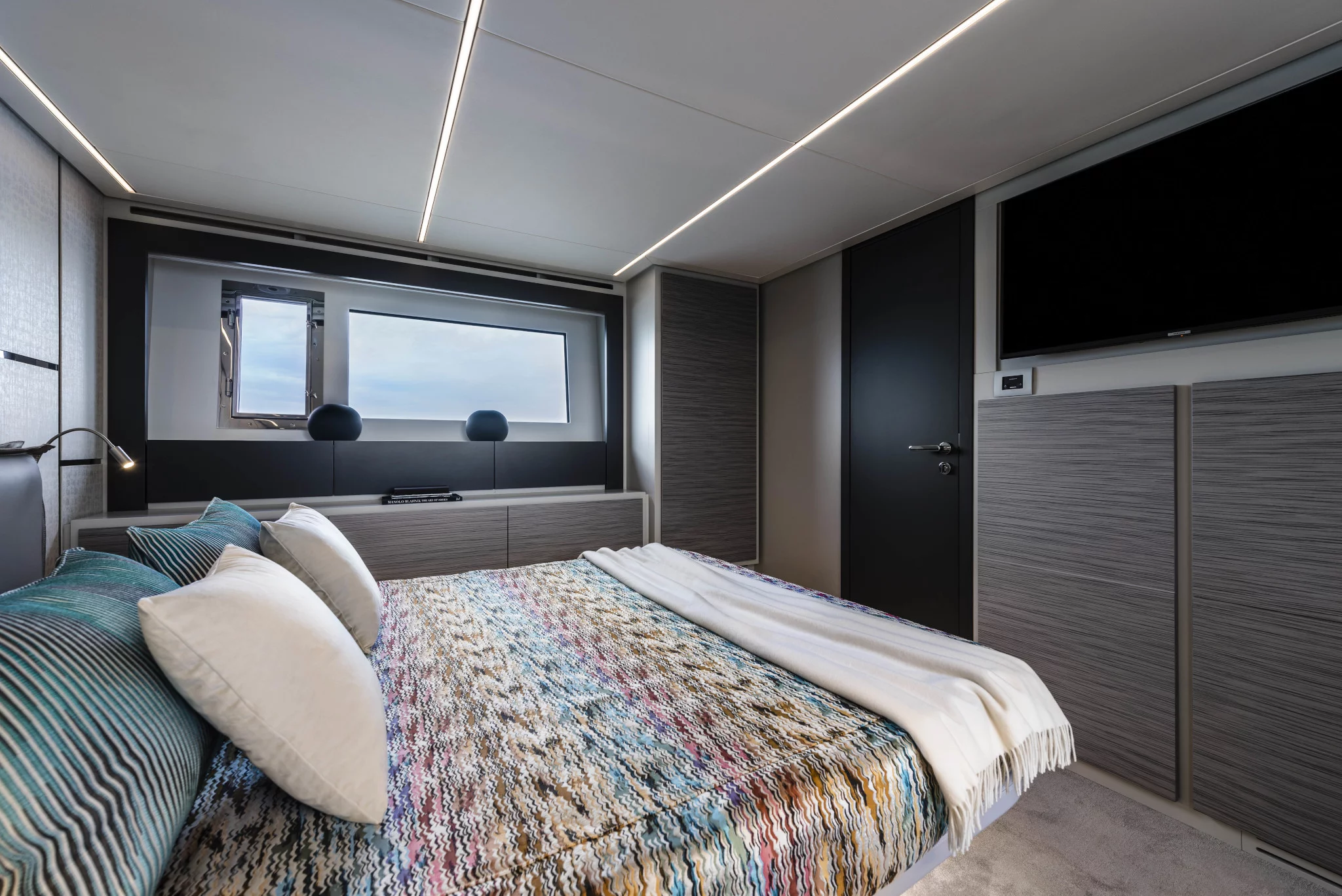 The interior features large panoramic windows, allowing abundant natural light into the below-deck spaces. The layout includes a master suite, a VIP cabin, and a guest cabin, all with en-suite bathrooms. The cockpit boasts sliding glass doors that seamlessly integrate the indoor and outdoor areas, creating a spacious and versatile environment. The Pershing 6X incorporates advanced navigation and control technologies, ensuring precise and safe handling. This model embodies the boldness and innovation of Pershing’s "X Generation," combining luxury, comfort, and cutting-edge performance.