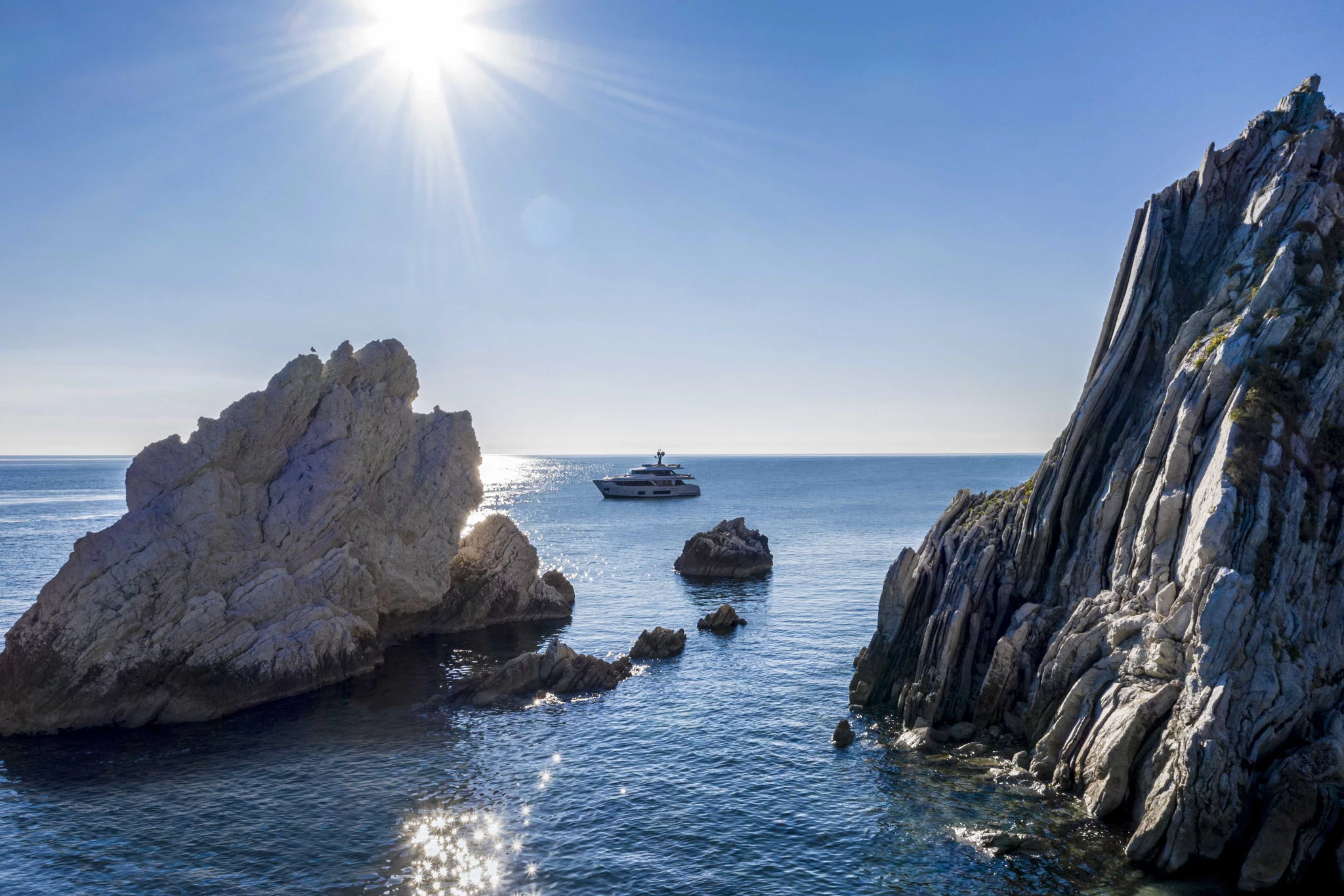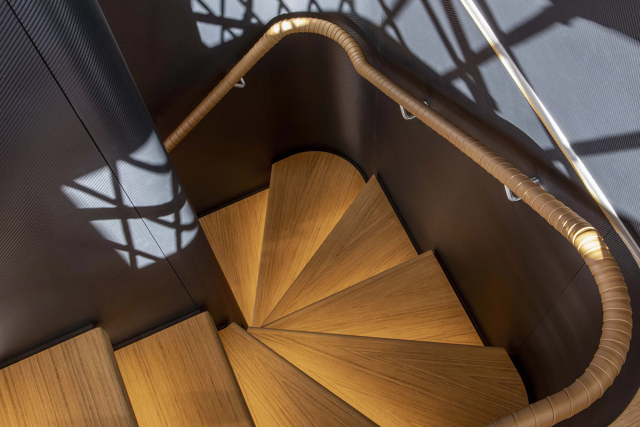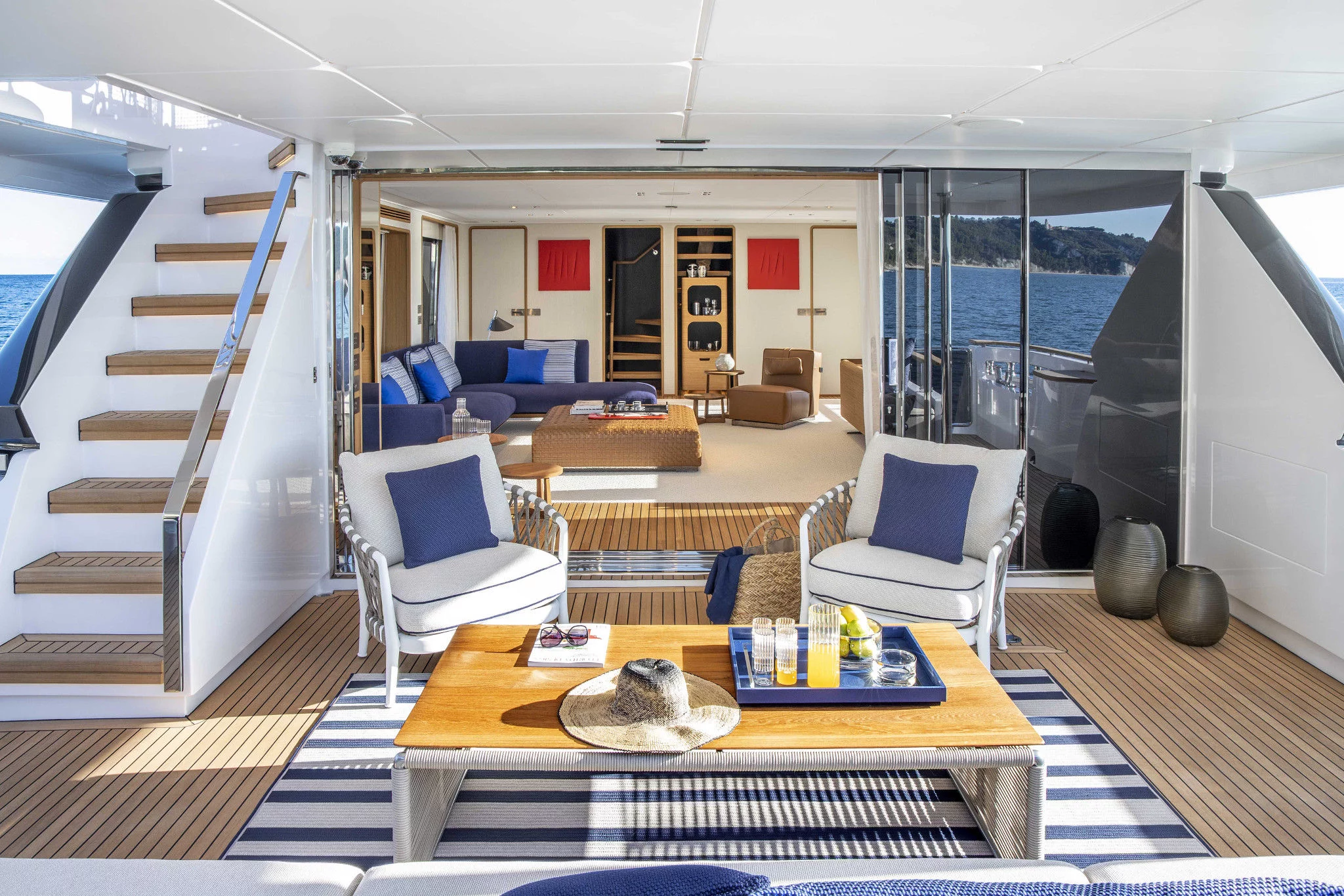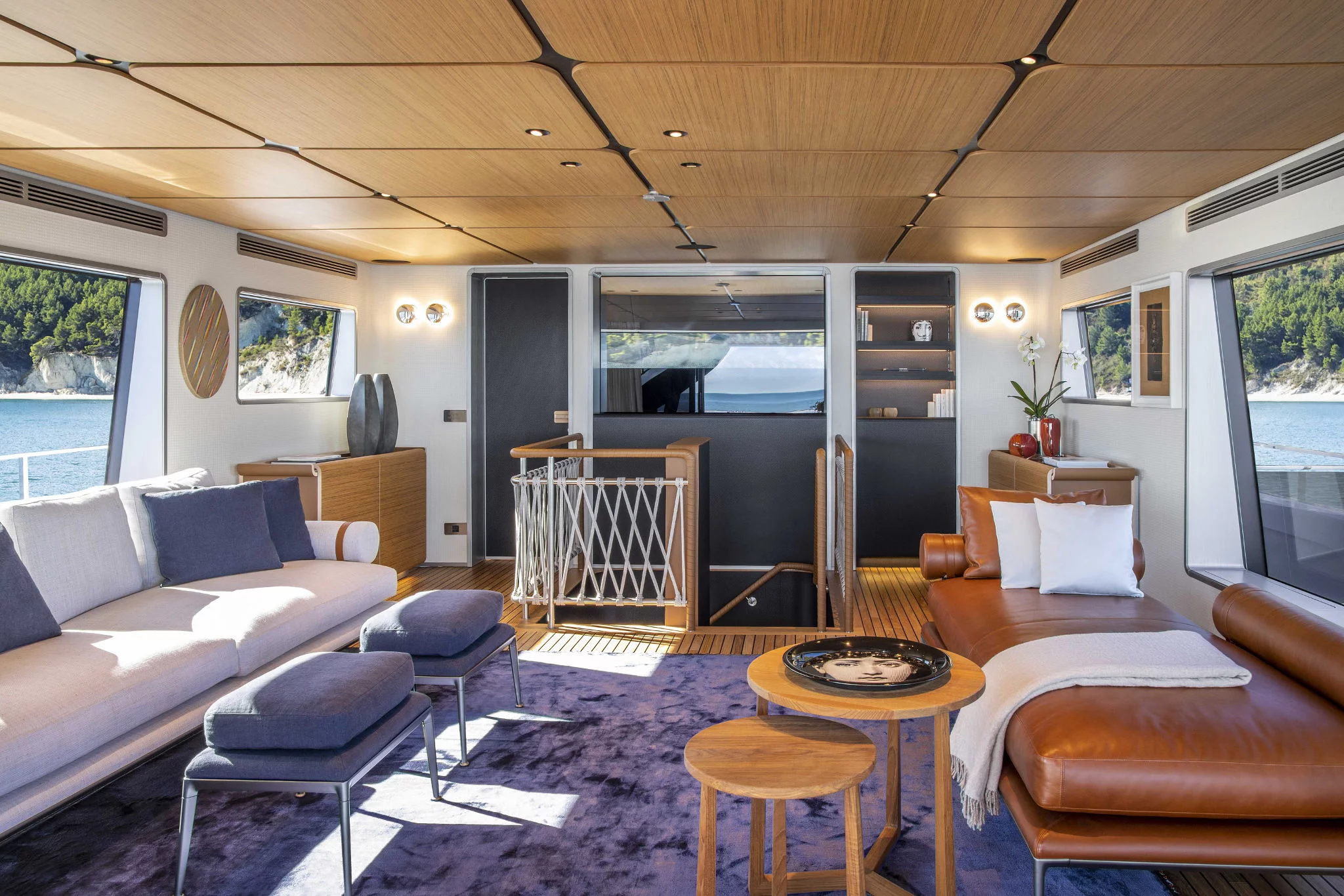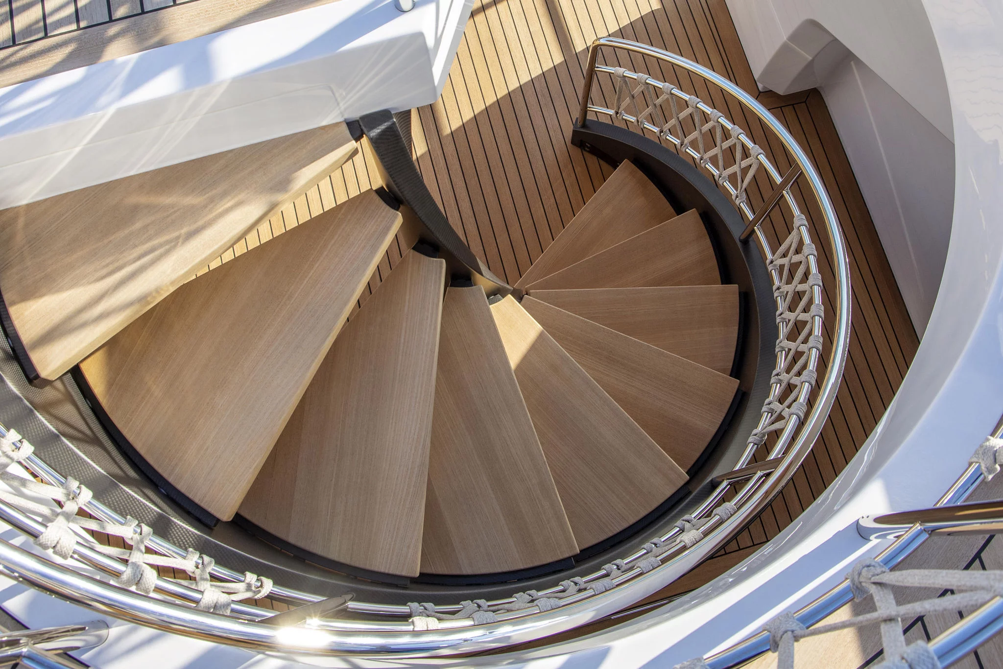 O projeto exterior é assinado pelo arquiteto Filippo Salvetti, enquanto o design interior é da responsabilidade do estúdio de arquitetura Antonio Citterio Patricia Viel. O iate dispõe de três decks, oferecendo amplos espaços exteriores e interiores, incluindo uma suíte principal no deck principal e quatro cabines adicionais no deck inferior, acomodando até 10 convidados. Grandes janelas panorâmicas proporcionam vistas deslumbrantes e abundante luz natural.