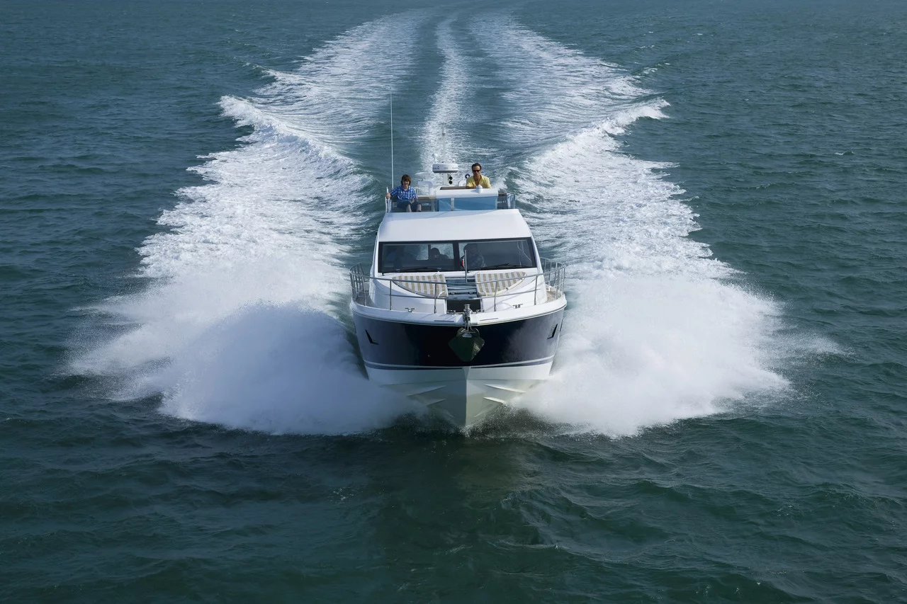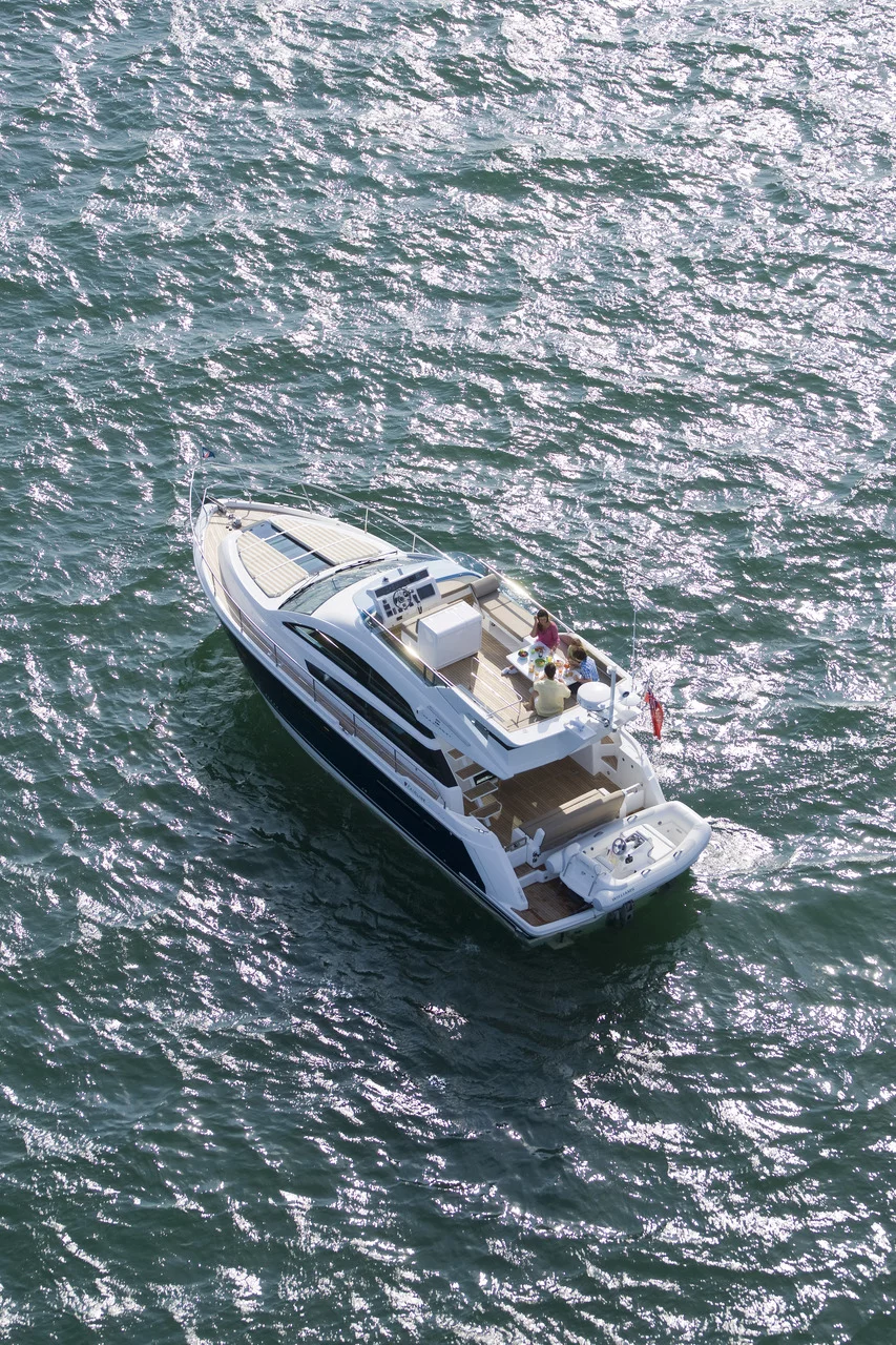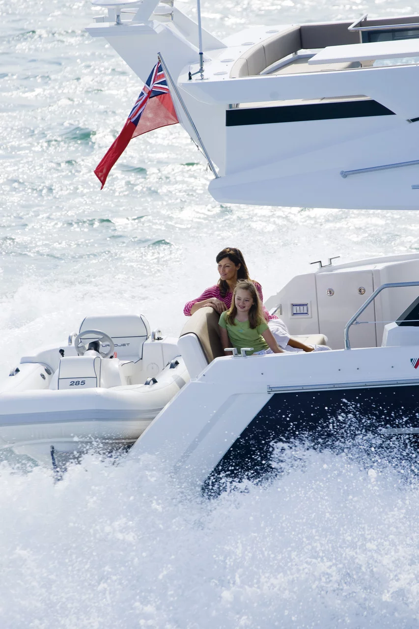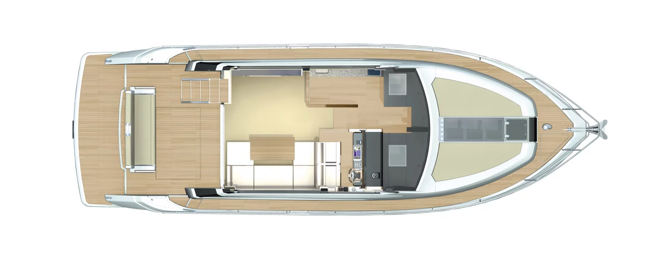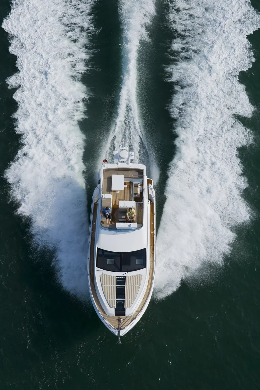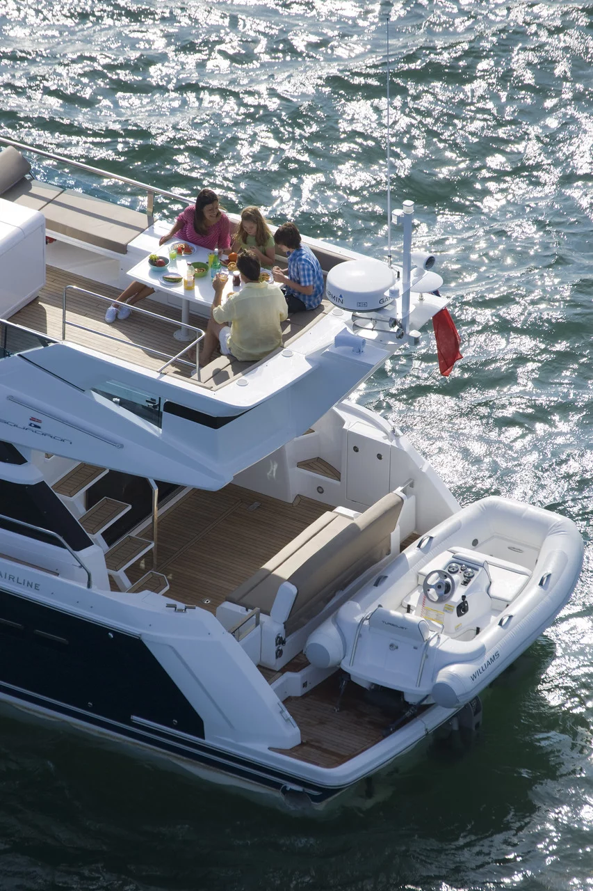 It was the most wonderful brief for our designers that would require every ounce of their ingenuity and experience. The result is a compact Squadron with the genuine feeling of a much, much larger yacht. Each area has been designed to work in harmony with the next. Your journey through the entire yacht is seamless, with no interruptions. And it is this flow that gives a feeling of a luxurious, open space. The type of freedom you would only expect from a 50+ foot yacht. The large flybridge isn’t just for show, every aspect has been carefully considered to create the space for people to move around freely. Yes, we can safely say, it is every inch a Squadron.
