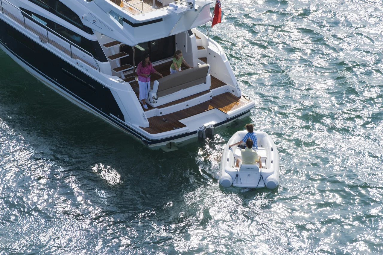 This is the smallest boat in Fairline’s range to offer the hydraulically powered Tender Launch System. The option of the hydraulic passerelle also makes for easy boarding and slides away at the touch of a button.