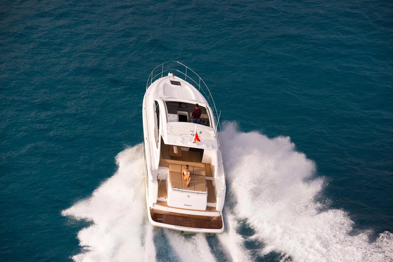 The spirit of the Mediterranean exists in every square inch of this perfectly formed Targa. In its open form, with the canvas roof retracted, there is a true sense of freedom that continues out onto the cockpit with its large, inviting sunpad.