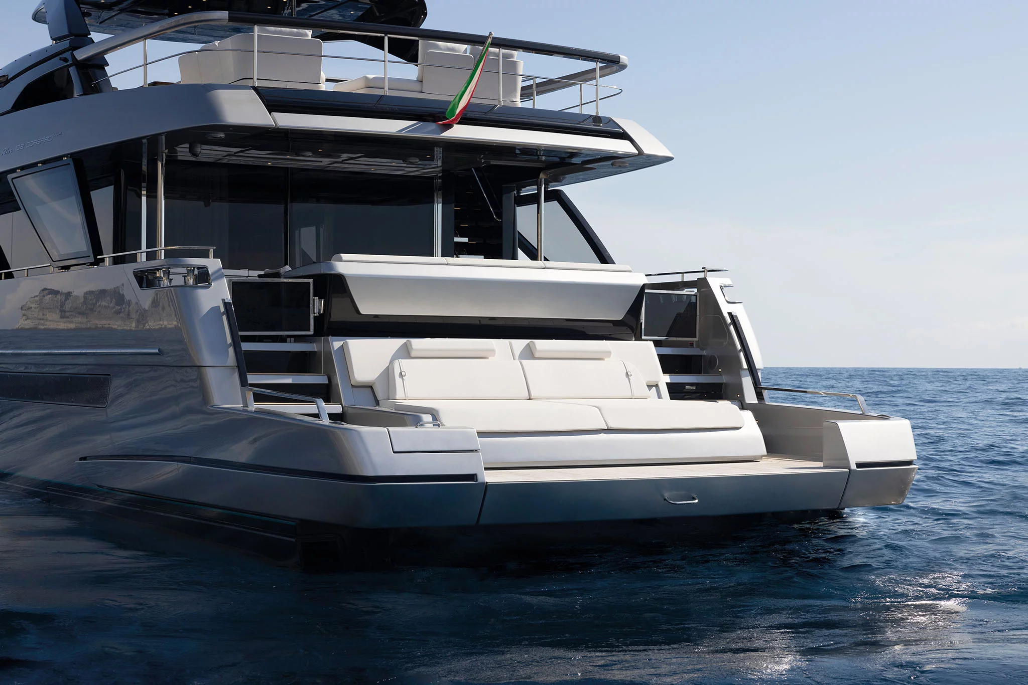 Com um novo design exterior e interior, o herdeiro do 100' Corsaro é o flybridge ideal para uma experiência de cruzeiro sublime.
