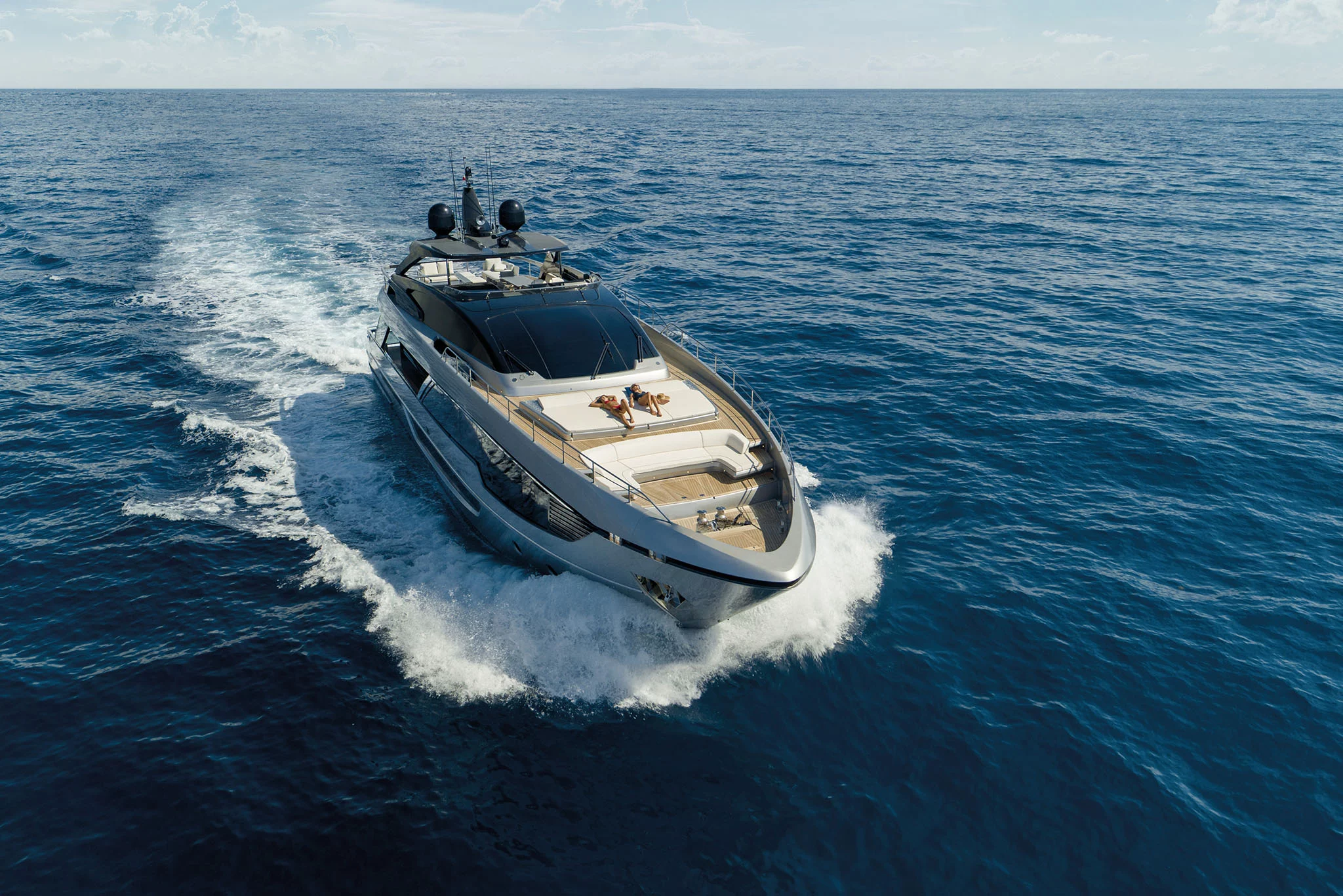 Riva 102' Corsaro Super: a nova era dos iates flybridge. Contemporâneo, desportivo e com espaços concebidos para sentir um contacto ininterrupto com o mar.